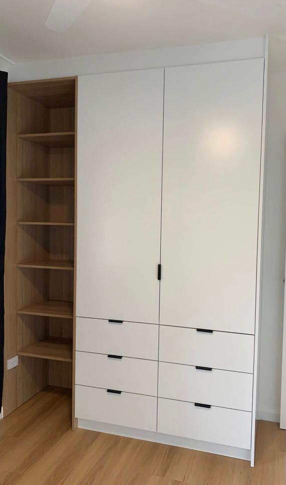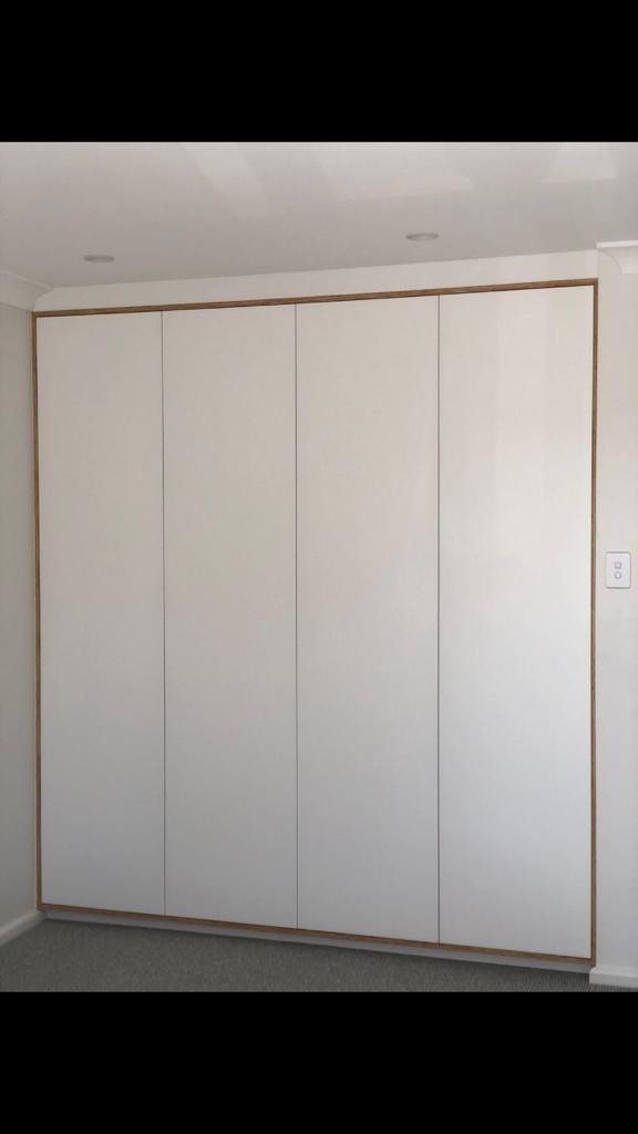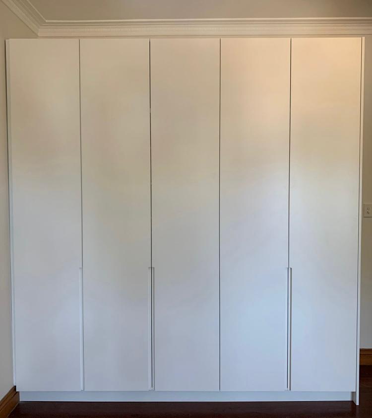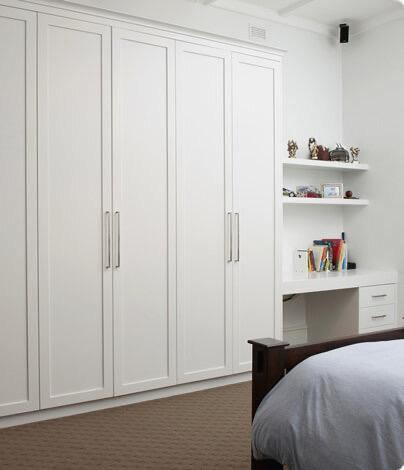 Hinged doors offer optimal access to larger rooms, making them an ideal choice for wardrobes. Our hinged door options encompass a variety of plain or patterned Polyurethane, timber veneer, solid timber, and Laminate finishes. Additionally, they can be customized to incorporate glass or mirror inserts, allowing you to align them with your interior décor seamlessly.