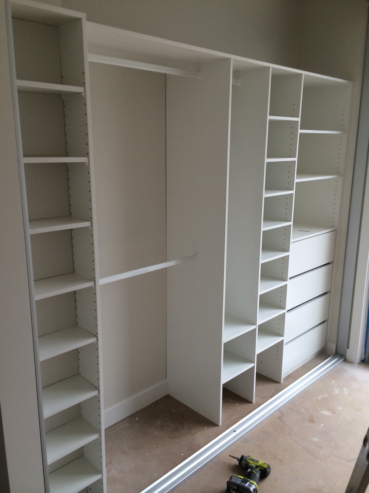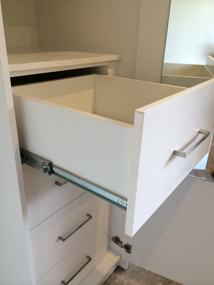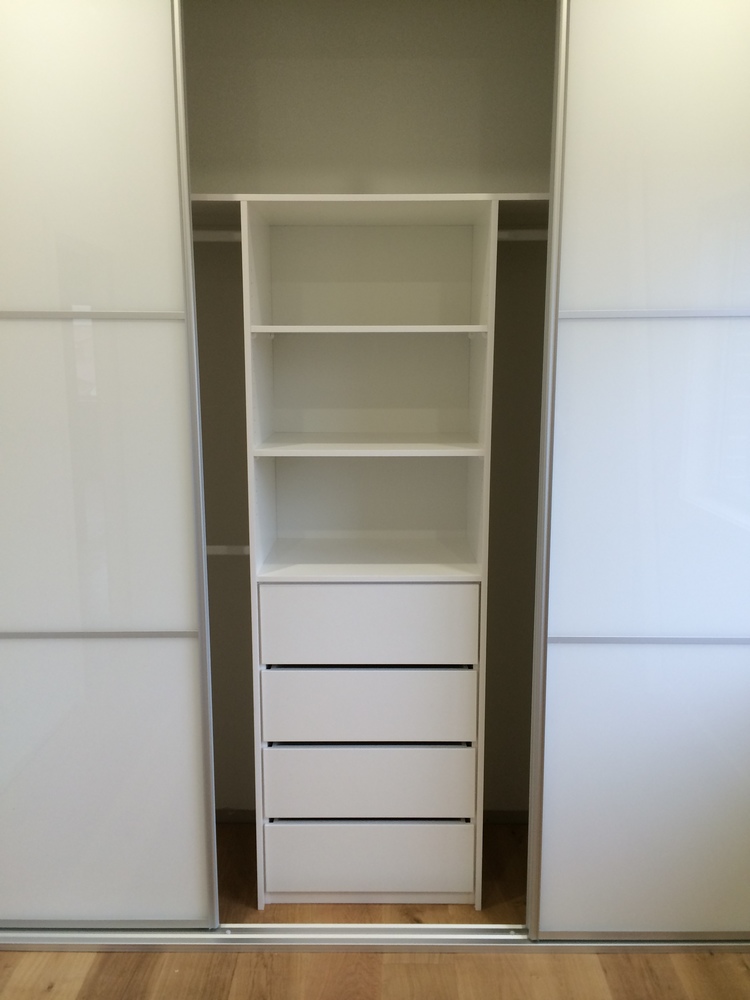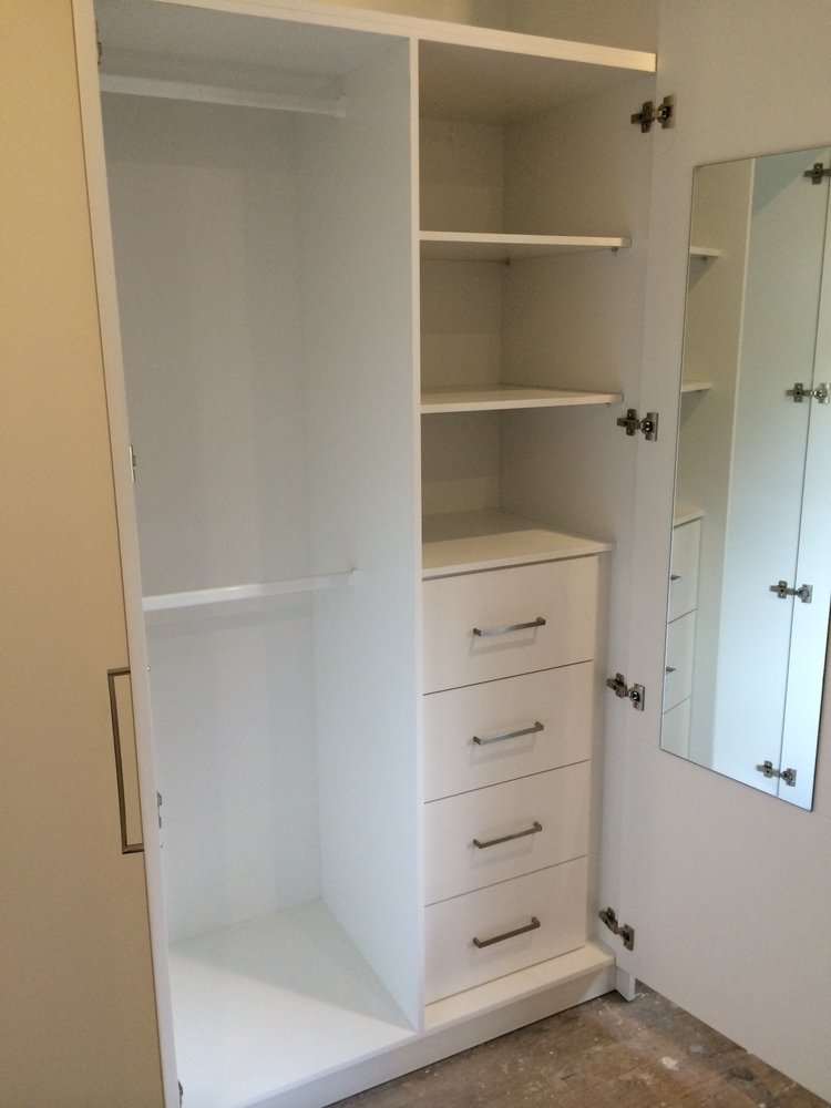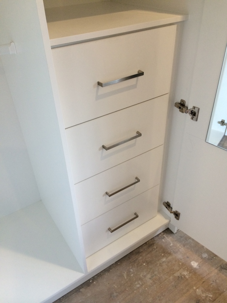 At AG Kitchens & Wardrobes, we take pride in presenting a diverse range of interior configurations. Thoughtfully planned internal wardrobe layouts not only optimize space but also offer intelligent storage solutions. Featuring combinations of long and double hanging, adjustable or fixed shelving, and various drawer configurations, our layouts can be tailored to your specifications. Additionally, we offer a wide selection of options such as shoe shelves, wire basket drawers, and adjustable shelving to enhance functionality. Whether you seek inspiration for a walk-in wardrobe design or an interior layout for your new wardrobe doors, we can assist you in identifying your requirements and assessing their feasibility.